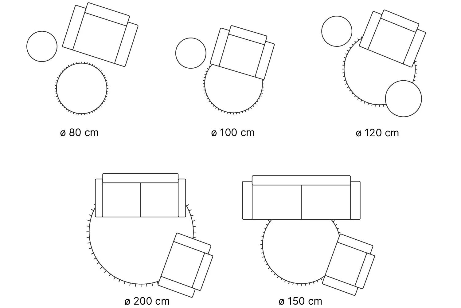 Priljubljen trik je tudi uporaba okrogle preproge v manjših prostorih, saj jih s tem vizualno povečate, zlasti če so preproge svetlih barv. Vendar mora biti njen premer vsaj tako širok kot širina sedežne garniture.