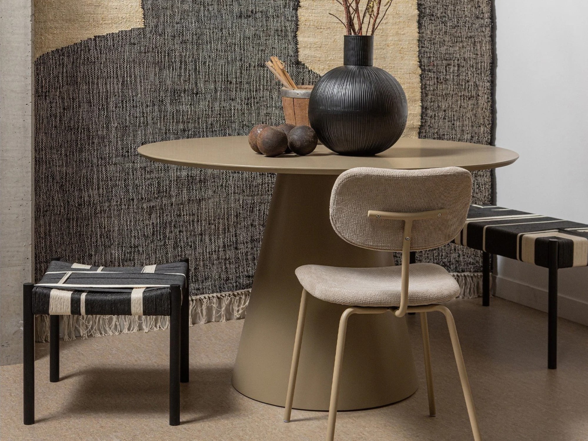 Posezite po lesenih komodah z čistimi linijami, naravno obdelanem pohištvu ali ročno tkanih preprogah, ki v prostor vnesejo toplino, a brez vizualne prenatrpanosti.