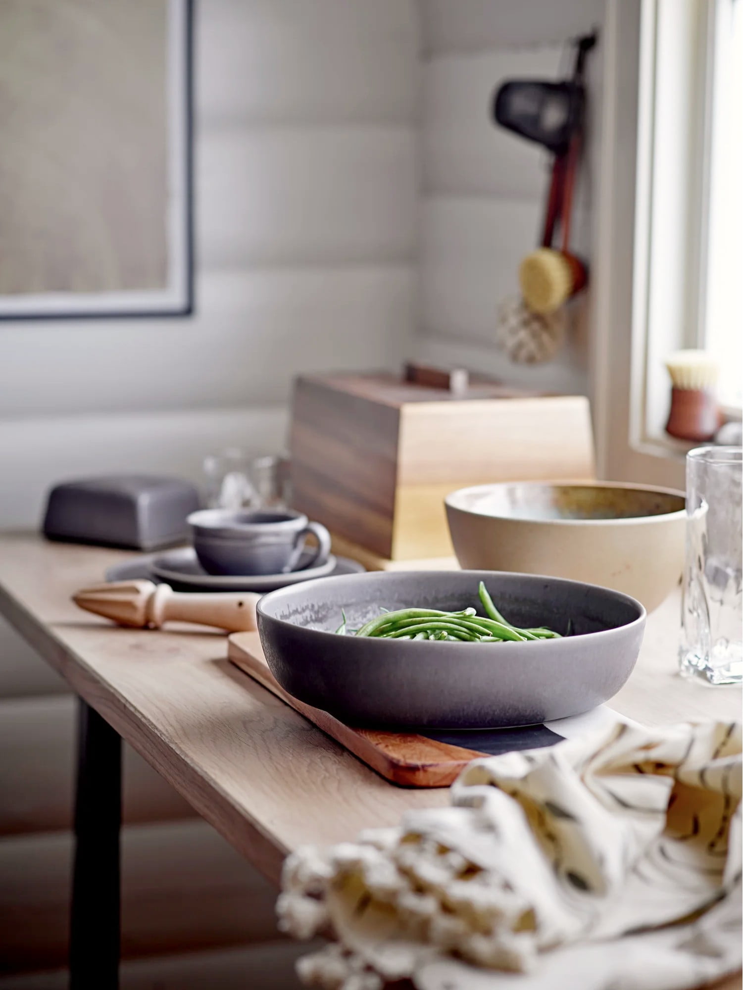 Barvna paleta naj bo nevtralna – bela, bež, tople siva, umirjeno zelena. S keramiko ali tekstilom v indigo, oglenih ali zemeljskih rjavkasto-oranžnih tonih dodajte mehke kontraste. Cilj ni monotonost, ampak vizualna harmonija.
