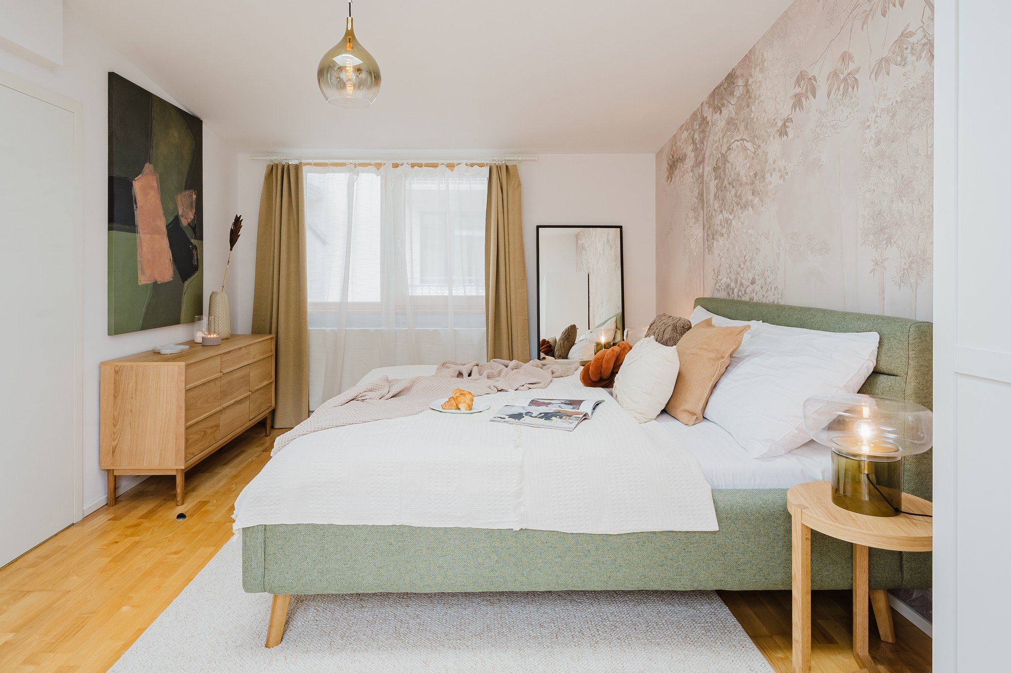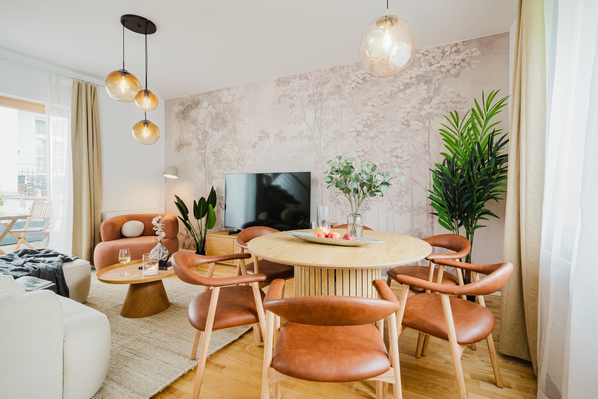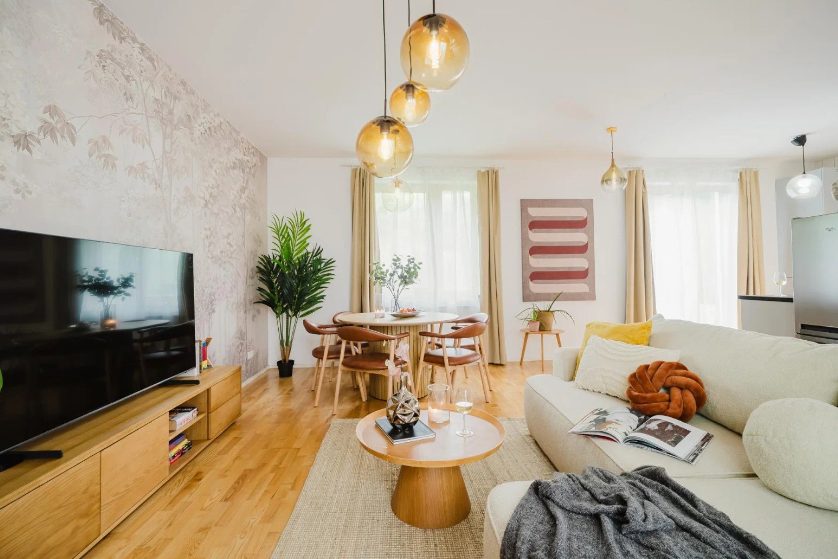 Visoki stropi, steklena vrata in veliko naravne svetlobe spremenijo to podstrešno stanovanje v prostor, kjer se boste takoj počutili kot doma. Na 90 m² se naravno prepletajo dnevni prostor s kuhinjskim kotičkom, dve spalnici ter terasi z zunanjim kotičkom za sprostitev. Interier je bil zasnovan z idejo, da bo gostom ne bo ponudil le vizualno očarljivo opremljenih prostorov, temveč tudi harmoničen in udoben prostor za sprostitev in vsakdanje življenje.