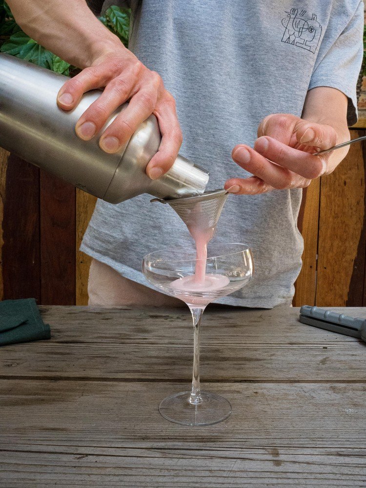 Precedite skozi fino cedilo v kozarec za koktejle.