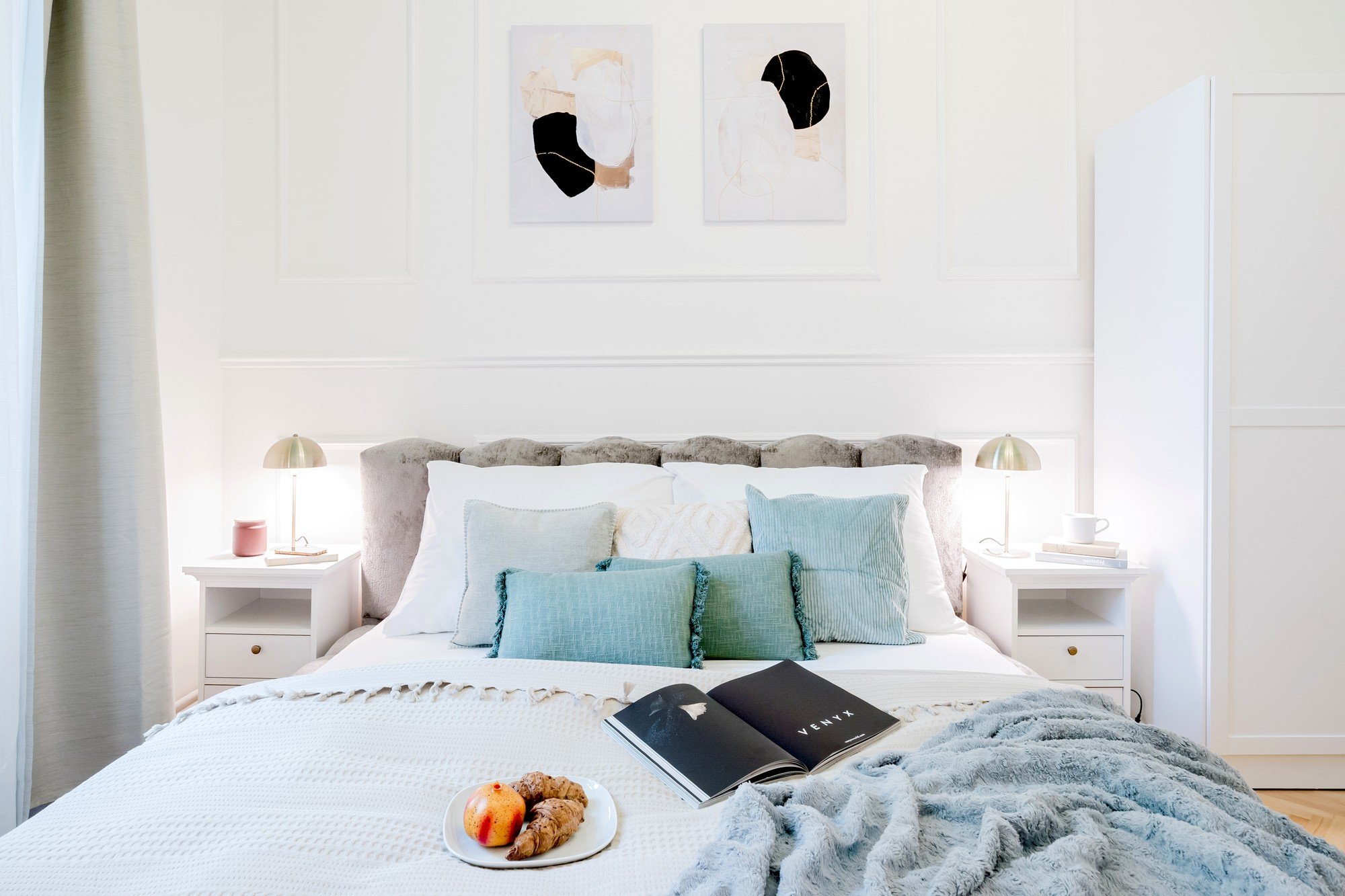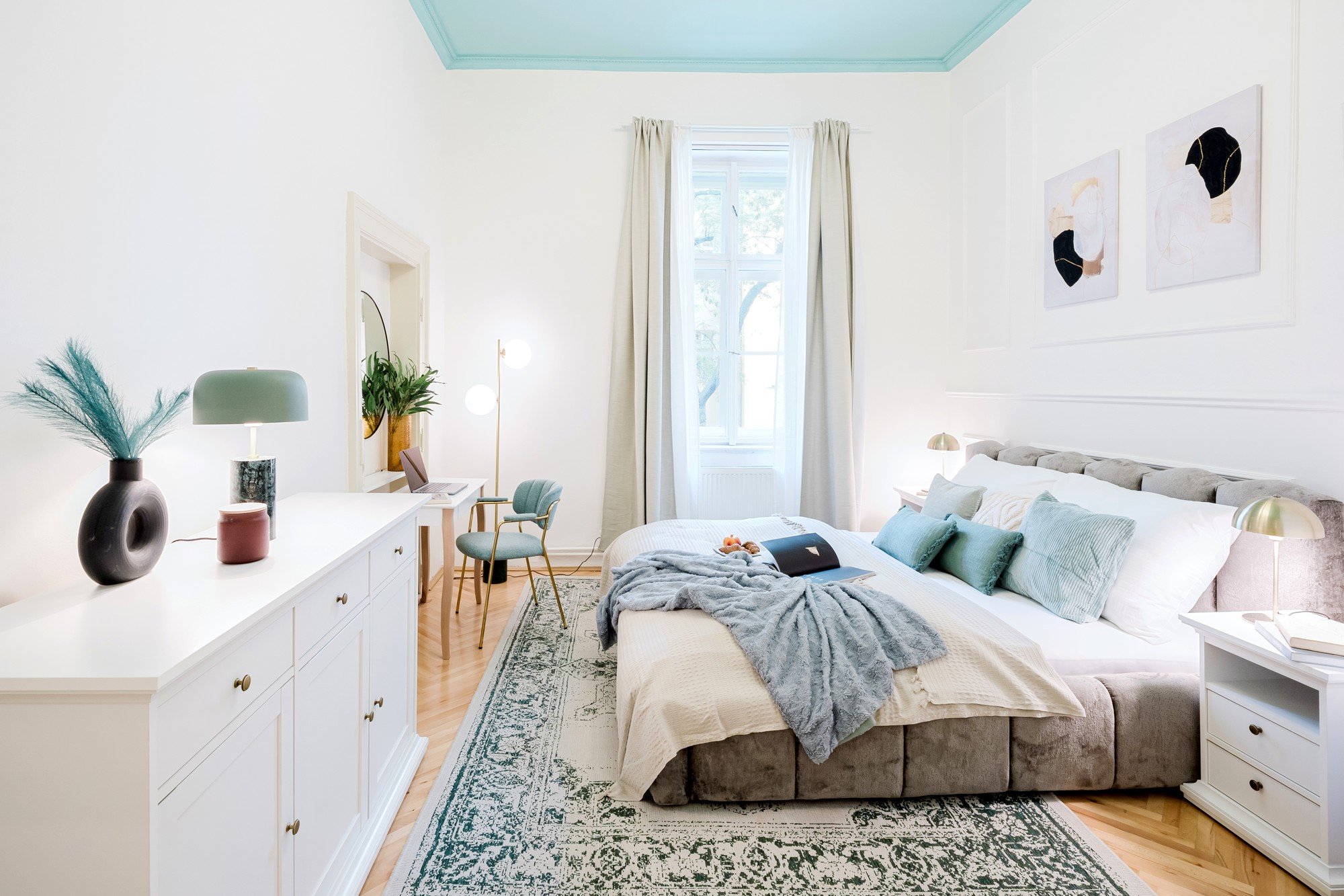To trisobno stanovanje, namenjeno kratkoročnemu najemu, se nahaja v eni izmed klasičnih stavb v Pragi. Zanje so značilni visoki stropi in ravno ta vertikalni prostor je bil glavni navdih za celoten dizajn. Barvito poslikani stropi dajejo notranjosti značilen karakter in poudarjajo njene proporce, medtem ko glamurozni elementi, dekoracija in zlati detajli povezujejo celotno stanovanje v elegantno in nepozabno celoto.