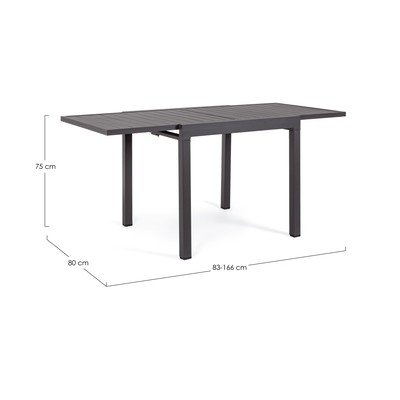 Aluminijasta, antracitno siva, 80x83 cm, dolžina v raztegnjem stanju 166 cm