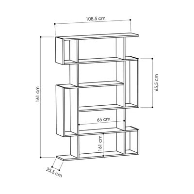 Mito je knjižna omara iz hrastovega lesa v geometrijskem slogu. Da bi varno služil svojemu namenu, ga je treba po montaži pritrditi na steno.