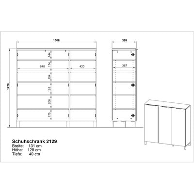 Iz iverne ploščePovršinska obdelava: Melamin/površinska obdelava: stekloV sijajnem dekorjuSivaŠtevilo parov čevljev 32 Širina 131 cmVišina 128 cmGlobina 40 cm
