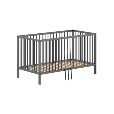Otroška posteljica DINO70x140 cm, z odstranljivo stranico/z nastavljivo višino, z letvenim dnom, iz masivne bukve, površinska obdelava: barva, antracitno siva