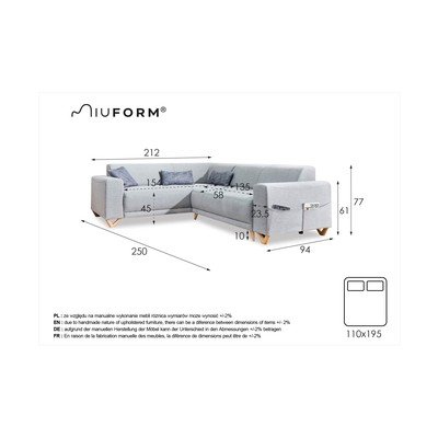 Raztegljiva/s prostorom za shranjevanjeLevi kot/v obliki črke LAntracitno sivaŠtirisedežnaŠirina 250 cmGlobina 212 cmGlobina sedeža 58 cm