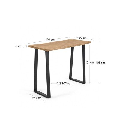 Barska miza Alaia iz Kave Home navdušuje s kombinacijo masivnega zgornjega dela iz akacije z naravnim lesnim vzorcem in minimalistične črne kovinske konstrukcije. Zaradi edinstvene teksture in barvnih odtenkov lesa je vsaka miza izvirna. Mizna plošča velikosti 60 x 140 cm zagotavlja dovolj prostora za serviranje pijač in prigrizkov.