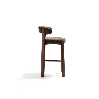 Sedež in zaobljeno naslonjalo sta oblazinjena v tkanino z značilno teksturo, ki je izdelana iz recikliranega poliestra. Ta material je pridobljen od dobavitelja s certifikatom Global Recycled Standard, kar zagotavlja manjšo porabo virov in primarnih surovin. Poleg tega tkanina izpolnjuje certifikat OEKO-TEX® STANDARD 100, ki potrjuje okoljsko varno in odgovorno proizvodnjo.