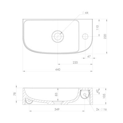 Iz mineralnega kompozita, bel, širina 44 cm, globina 22 cm, višina 10,5 cm