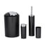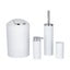 V kompletu boste našli lonček za zobno ščetko, dozirnik za milo s črpalko, koš za smeti s prostornino 6,5 litra in praktičnim pokrovom za enostavno praznjenje ter toaletni set s ščetko in zamenljivo glavo širine 6,5 cm. Ščetka ima prožne plastične ščetine, ki učinkovito čistijo in ne opraskajo straniščne školjke.
