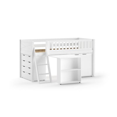 Postelja je izdelana iz kakovostnega borovega lesa, ki zagotavlja stabilnost in vzdržljivost. Zaradi dvignjene zasnove postelja Scott zagotavlja veliko prostora za shranjevanje pod posteljo. Pisalna miza ponuja popoln prostor za učenje ali ustvarjalne dejavnosti. Garderobna omara in komoda zagotavljata dodaten prostor za shranjevanje oblačil in drugih predmetov.