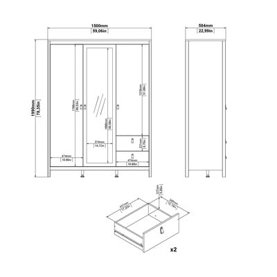 Z ogledalomIz iverne ploščePovršinska obdelava: FolijaV mat dekorjuBelaŠirina 150 cmVišina 199 cmGlobina 58 cm