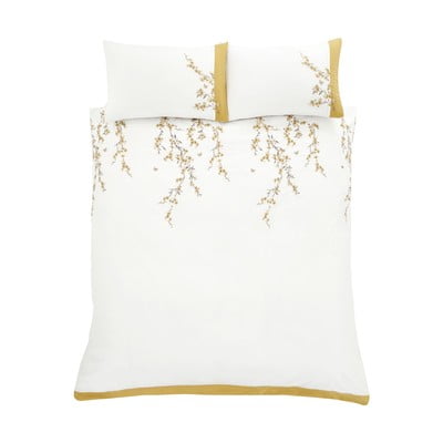 Za zakonsko posteljo, na gumbe, s cvetličnim vzorcem, rumena/bela, 200x200 cm