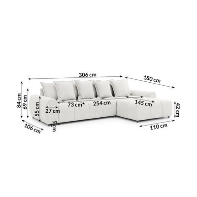 Bela kotna sedežna garnitura (desni kot/z ležalnikom) Albane – Ropez