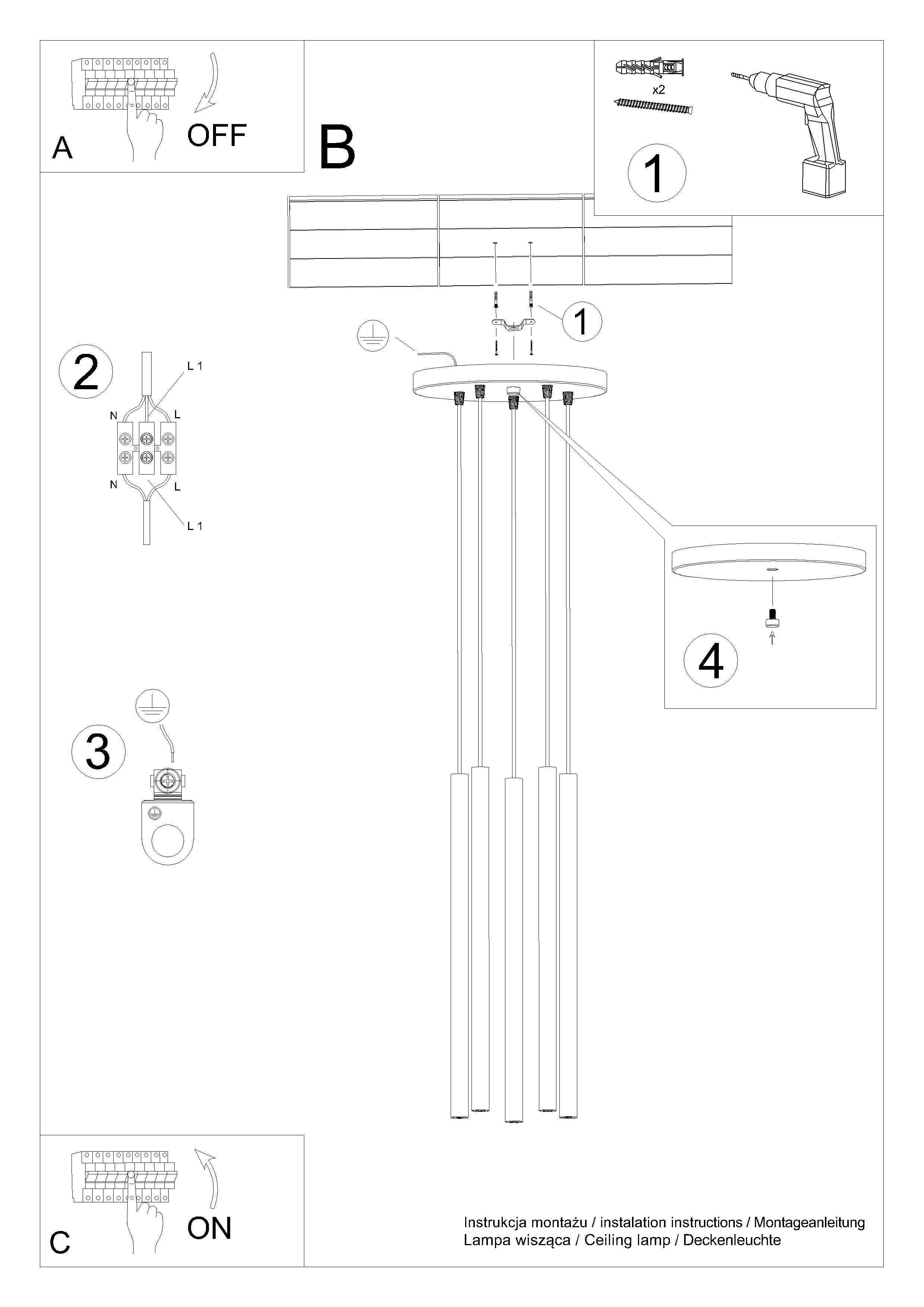 Viseča svetilka Fideus znamke Sollux. Minimalistična zasnova z več svetlobnimi viri daje notranjosti sodoben pridih.