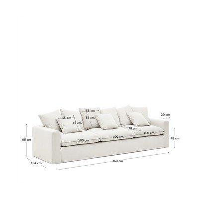 Lanena, s snemljivo prevleko, bela, večsedežna, širina 340 cm