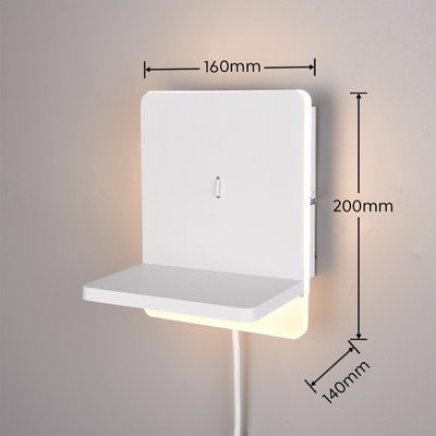 LED, z USB priključkom/zatemnitvena/s polico, z vtikačem, kovinska, bela, višina 20 cm