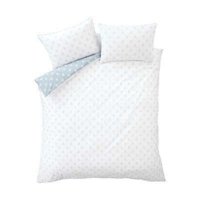 Za zakonsko posteljo, na gumbe, obojestranska, bombažna, s cvetličnim vzorcem, bela/modra, 200x200 cm