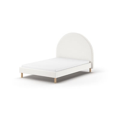 Postelja MOON iz Vipacka navdušuje predvsem z oblazinjenjem iz tkanine bouclé, ki daje eleganten, skoraj luksuzen vtis. Priporočamo, da kupite tudi tabure it iste kolekcije.