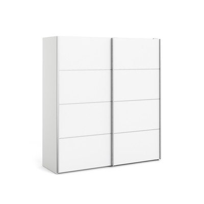 Garderobna omara VeronaZ drsnimi vrati, iz iverne plošče, površinska obdelava: Folija, v mat dekorju, bela, širina 182 cm, višina 202 cm, globina 64 cm