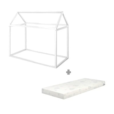70x140 cmV obliki hiškeZ vzmetnico/brez letvenega dnaIz masivnega boraPovršinska obdelava: barvaBela