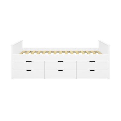 90x200 cm, s prostorom za shranjevanje, z letvenim dnom, površinska obdelava: lak, bela