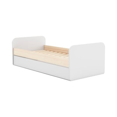 Otroška postelja Esteban90x200 cm, z dodatnim ležiščem, s prostorom za shranjevanje, z letvenim dnom, v borovem dekorju, površinska obdelava: lak, bela