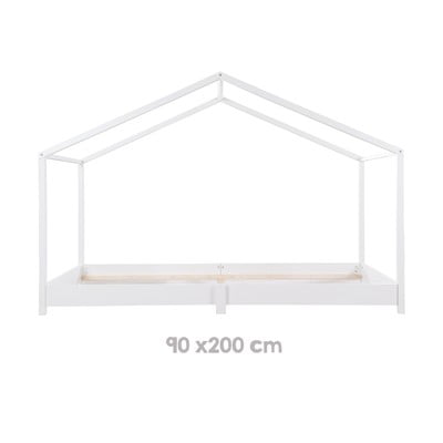 90x200 cm, v obliki hiške, z letvenim dnom, iz masivnega lesa, površinska obdelava: laminat, bela
