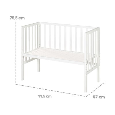 Vključuje visokokakovostno vzmetnico 45 x 90 cm iz testirane PU pene, zračno mrežasto prevleko za vzmetnico in patentirano varnostno pregrado.