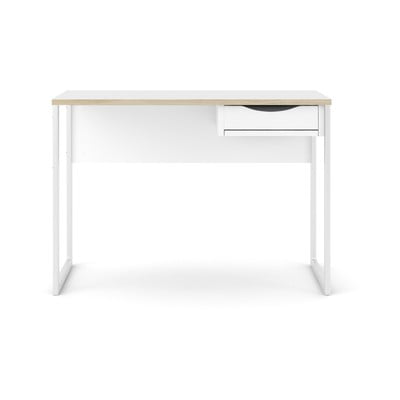 Kakovostna miza, stabilna zaradi jeklenih nog. Predal je lahko nameščen na desni ali levi strani ali pa sploh ne. Priporočljivo.