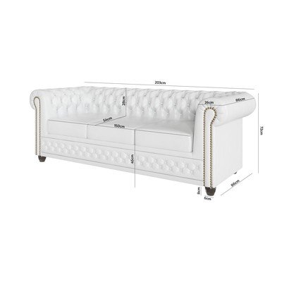 Iz umetnega usnja, Chesterfield, bela, vodoodporna/primerna za hišne ljubljenčke/odporna na madeže, dvosedežna, širina 203 cm