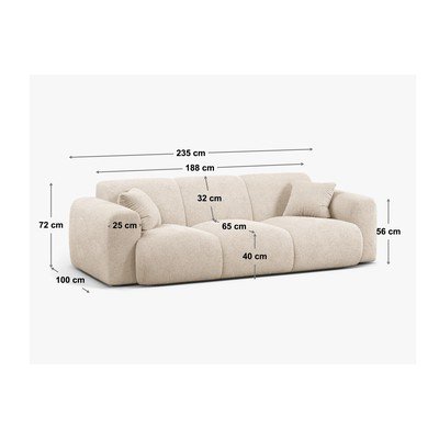 Iz tkanine bouclé, bela, trisedežna, širina 235 cm, globina 100 cm, globina sedeža 62 cm
