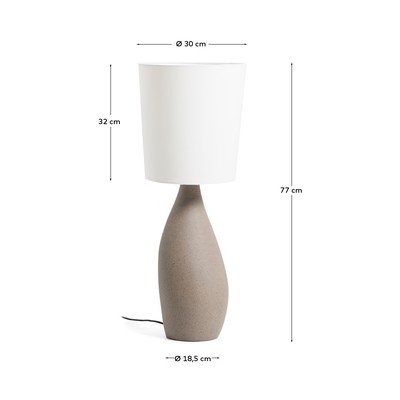 Namizna svetilka Viona proizvajalca Kave Home združuje podstavek s kamnito teksturo in bombažno senčilo. Robustna, organsko oblikovana podlaga doda kosu značaj in osebnost.
