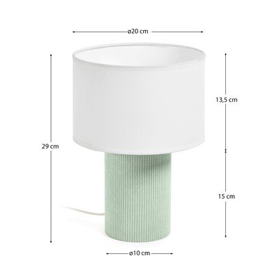 Namizna svetilka Bianella znamke Kave Home navdušuje s svojim uravnoteženim in modernim dizajnom. Njeno valjasto podnožje je prevlečeno z rebrasto tkanino, ki celoti daje topel občutek in zanimivo vizualno teksturo.