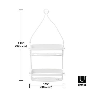Polica Flex znamke Umbra je zasnovana za priročno in učinkovito shranjevanje kopalniških potrebščin. Sestavljena je iz dveh prostornih polic z odprtinami za odtekanje vode. Obesite jo lahko na glavo za prho ali na palico za zavese za prho.