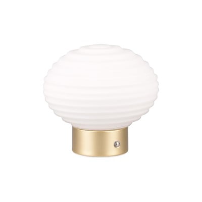 LED, zatemnitvena, s steklenim senčilom, kovinska/steklena, na USB, bela/v zlati barvi, višina 14,5 cm