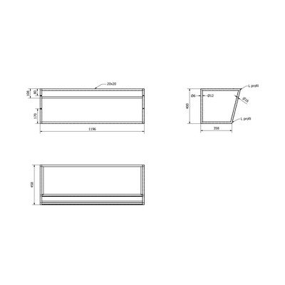 Stensko, jekleno, površinska obdelava: barva, belo/črno, širina 120 cm, višina 40 cm, globina 46 cm