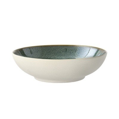 Skleda White/Green znamke Bitz. Njena edinstvenost je v kombinaciji matirane zunanjosti in sijoče, reaktivne glazure v notranjosti, zaradi česar je vsak kos izviren.