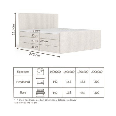 160x200 cmS prostorom za shranjevanjeOblazinjenaZ vzmetnico/z nadvložkomRočna izdelava/enostavno sestavljanjeBež