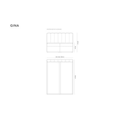 Oblazinjena postelja Gina s prostorom za shranjevanje ima 16 cm debelo vzmetnico in 4 cm debelo peno z gostoto 25 kg/m³ za ohranjanje čistoče vzmetnice.