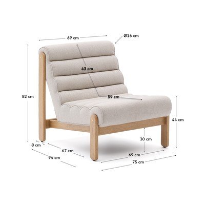 Naslonjalo in sedišče z izrazitim horizontalnim prešitjem sta napolnjena s peno srednje gostote (30 kg/m³), kar zagotavlja ergonomsko izkušnjo sedenja. Poliesterska tkanina z učinkom valov daje fotelju vizualno toplino in je prijetna na otip.
