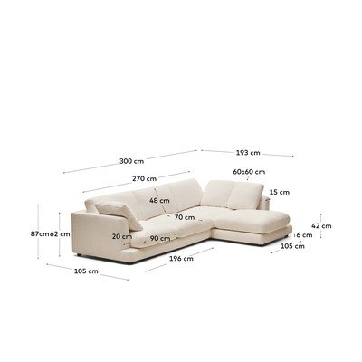 Iz šeniljeDesni kot/z ležalnikomBežOdporna na madežeŠtirisedežnaŠirina 300 cm