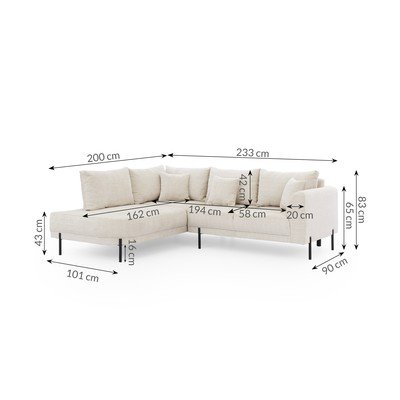 Bež kotna sedežna garnitura iz šenilje (desni kot/v obliki črke L) Mauris – Ropez