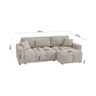 Kotna sedežna garnitura LukiRaztegljiva/s prostorom za shranjevanje, desni kot/levi kot/s kotom po izbiri/z ležalnikom, bež/svetlo rjava, trisedežna, širina 233 cm