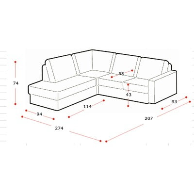 Levi kot/v obliki črke LBežTrisedežnaŠirina 274 cm