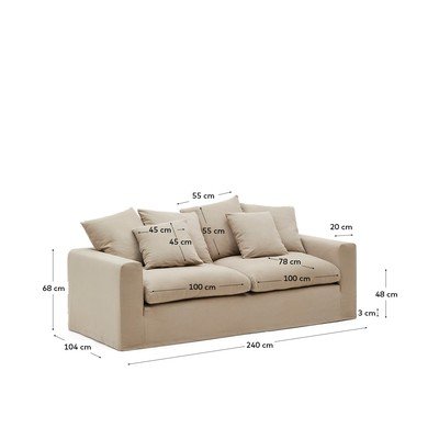 Sedežna garnitura NoraLanena, bež, trisedežna, širina 240 cm