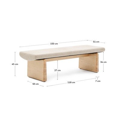 Iz šenilje, iz masivnega lesa/oblazinjena, bež/v naravni barvi, širina 150 cm, globina 51 cm, višina 45 cm