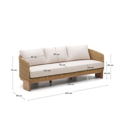 Iz umetnega ratana, trisedežen, bež/v naravni barvi, širina 222 cm, višina 74 cm, globina 78 cm