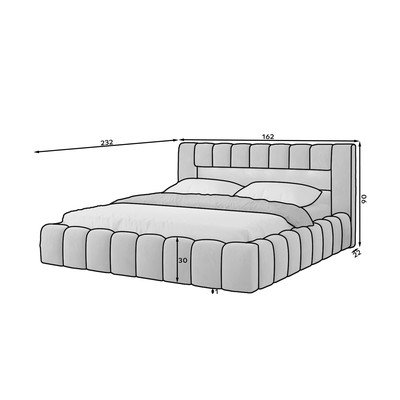 Dobro je vedeti: polica na vzglavju postelje je visoka 19 cm in globoka 20 cm, vendar lahko dimenzije zaradi mehkih robov odstopajo za do 2 cm.